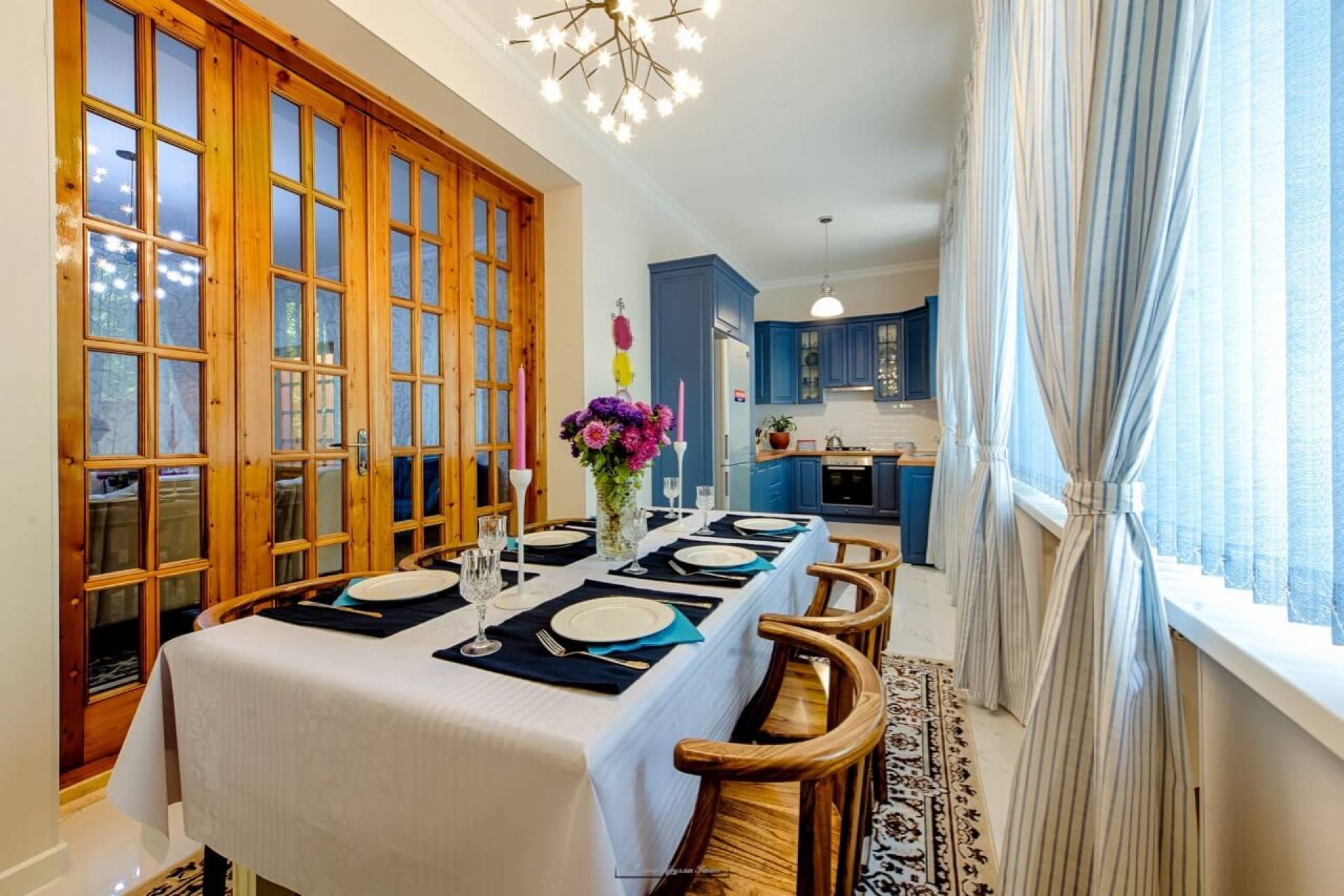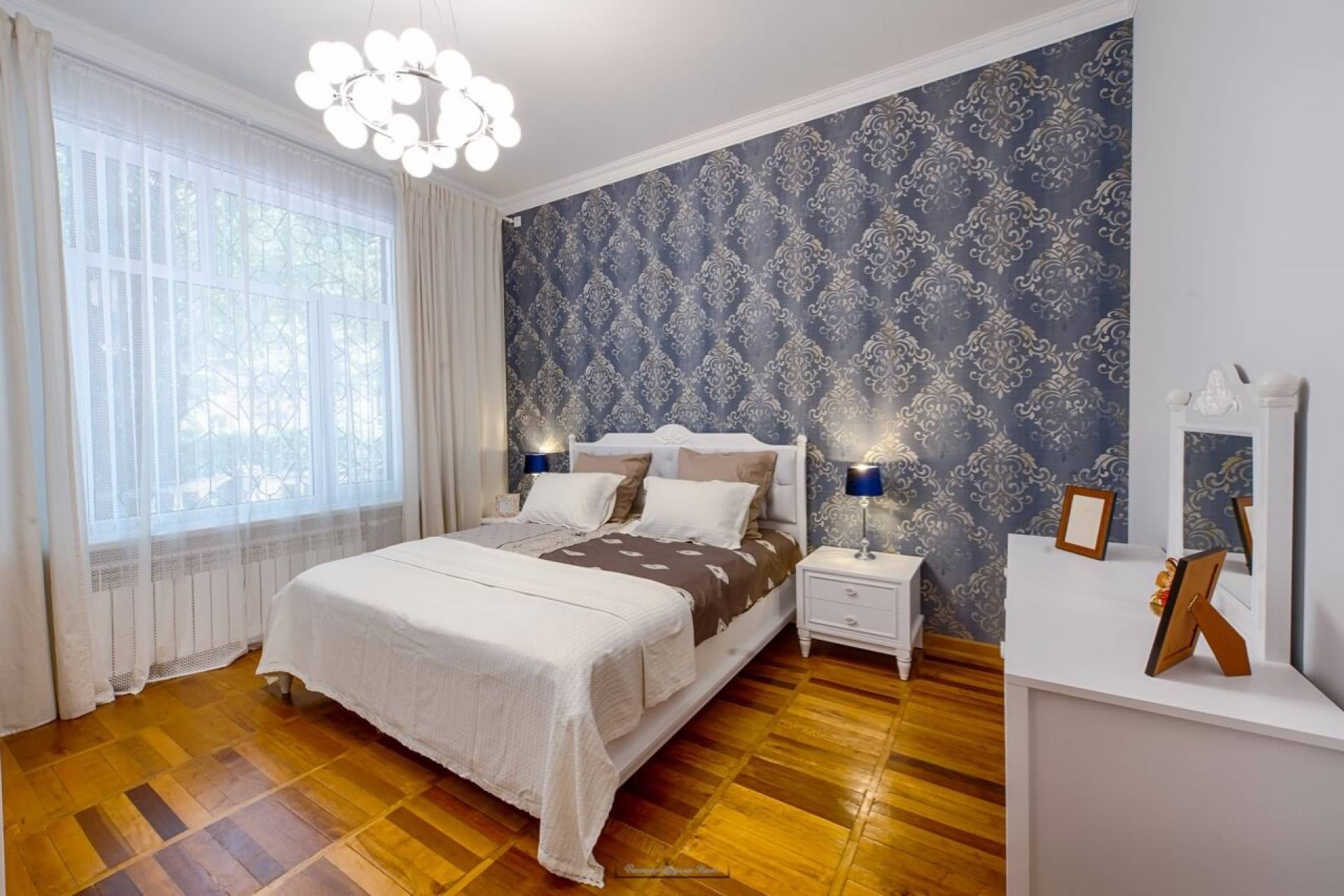 Пәтер бірінші қабатта орналасқан, аумағы 110 м² бөлмелер саны – 4, лоджиясы бар. 2019 жылы сапалы жөндеу жасалған, тұрғылықты орын кеңейген, бөлмелер жарық әрі жайлы. Еденге паркет төселген, жаңа, заманауи асхана орнатылған. Пәтерге нағыз жайлы пәтердің атмосферасын беріп тұрған модерн үлгісіндегі заманауи жиһаздар жайғастырылған. Барлық тұрмыстық техника бар: тоңазытқыш, мұздатқыш, салқындатқыш, теледидар, үтік, шаңсорғыш. Жуынатын бөлмеге кір жуатын башня орнатылған, қонақтарға арналған бөлек санитарлық торап, үй телефоны мен WiFi бар. Екі қабатты есік берік құлыппен жабдықталған.