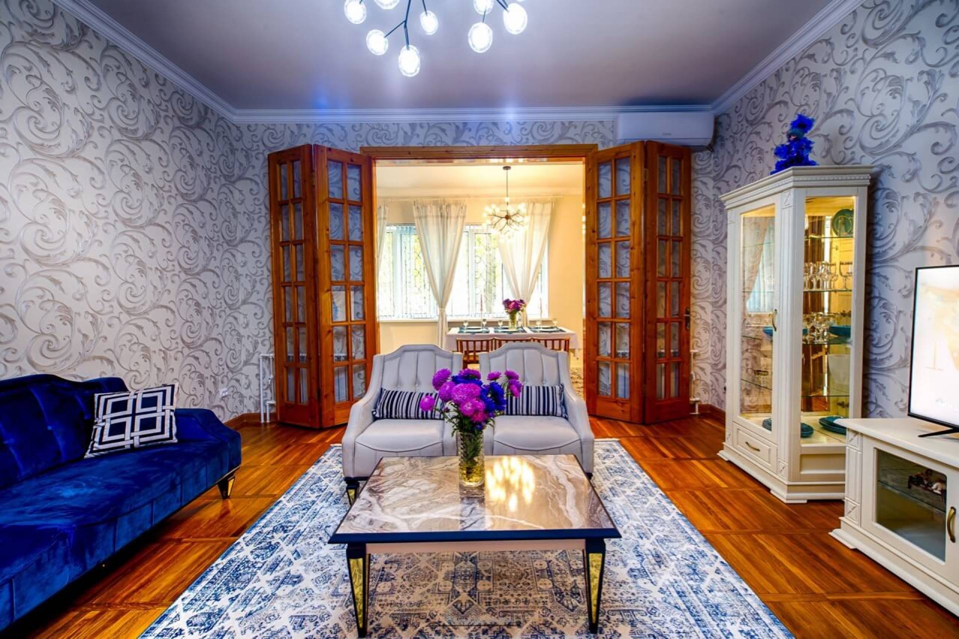 Пәтер бірінші қабатта орналасқан, аумағы 110 м² бөлмелер саны – 4, лоджиясы бар. 2019 жылы сапалы жөндеу жасалған, тұрғылықты орын кеңейген, бөлмелер жарық әрі жайлы. Еденге паркет төселген, жаңа, заманауи асхана орнатылған. Пәтерге нағыз жайлы пәтердің атмосферасын беріп тұрған модерн үлгісіндегі заманауи жиһаздар жайғастырылған. Барлық тұрмыстық техника бар: тоңазытқыш, мұздатқыш, салқындатқыш, теледидар, үтік, шаңсорғыш. Жуынатын бөлмеге кір жуатын башня орнатылған, қонақтарға арналған бөлек санитарлық торап, үй телефоны мен WiFi бар. Екі қабатты есік берік құлыппен жабдықталған.