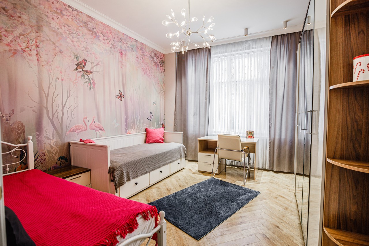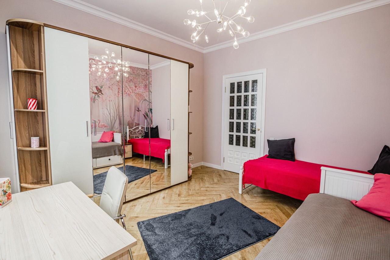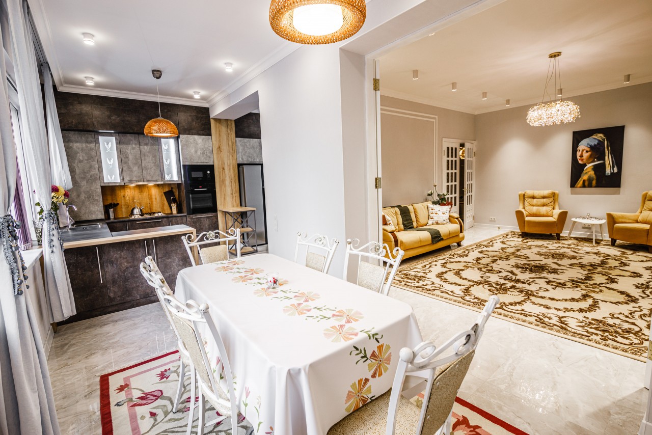 Пәтер бірінші қабатта орналасқан , аумағы 125 м², лоджиясы бар. 2017 жылы мұнда пәтердің аумағын барынша ұлғайтқан сапалы жөндеу жұмысы жүргізіліп, пәтер жайлылықты ұнататын адамдарға таптырмас орынға айналды. Пәтердегі еден сапалы паркеттен жасалған. Пәтердің іші жарық және жиһаздары толығымен классикалық үлгіде. Пәтерде тұрмысқа қажетті жабдықтардың барлығы да бар: тоңазытқыш, мұздатқыш, қысқа толқынды пеш, кір жуатын машина, салқындатқыш, теледидар, үтік, шаңсорғыш. Қонақтарға арналған бөлек санитарлық торап қарастырылған. Үй телефоны мен WiFi қосылған. Екі қабатты есік берік құлыппен жабдықталған.