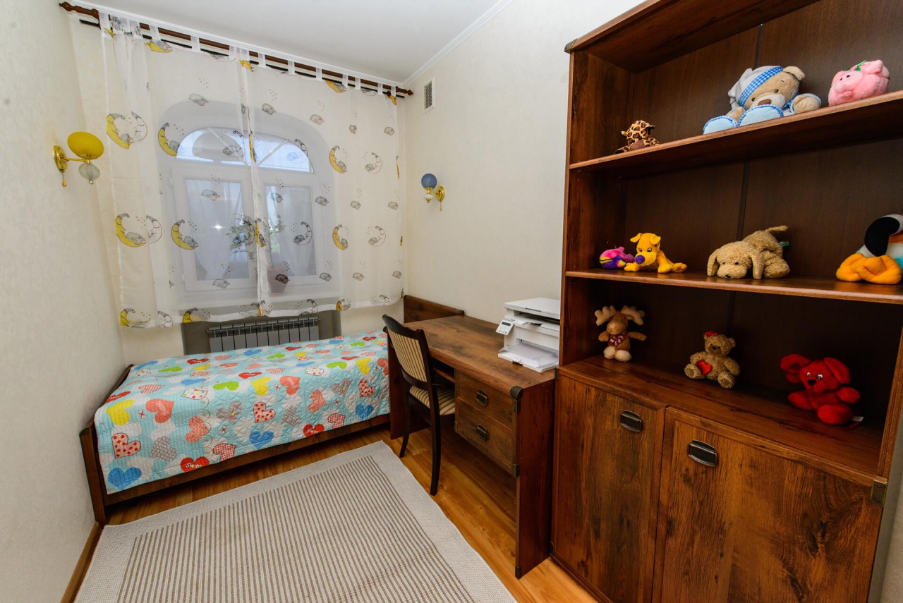 3-комнатная квартира расположена на 4 этаже, площадь — 68 м2. Светлая и просторная лоджия переоборудована в удобную столовую. В квартире произведен полный качественный ремонт, установлена новая современная кухня. Квартира укомплектована новой мебелью в классическим стиле, для каждой комнаты создан индивидуальный дизайн и решены вопросы эргономичности. Подключена необходимая бытовая техника: холодильник, морозильник, микроволновая печь, стиральная и сушильная машины, кондиционер, телевизор, утюг, пылесос, домашний телефон и Wi-Fi.